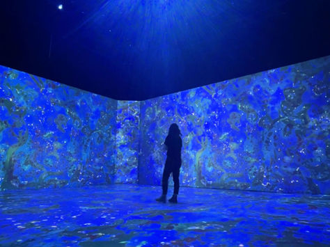 Immersive, eller omsluttende rom betyr at man er omringet av noe - gjerne av flere uttrykk samtidig. Gjennom digitale projiseringer på ulike flater skaper vi visuelle, interaktive og scenografiske kunst- og formidlingsopplevelser. Vi kan også kalle det en visuell omfavnelse med lyd - som kan fylle et stort rom eller et lite hjørne. Det som er avgjørende er å finne riktig uttrykk til riktig publikum.